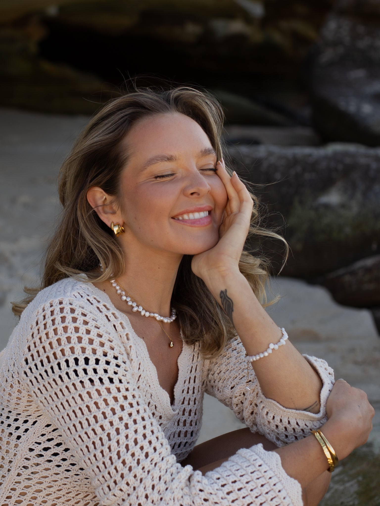 Versatile enough for everyday wear, it transitions seamlessly from the gym to the beach to evenings out. Wear it on its own or layer it with gold pieces to enhance its natural glow. It also pairs perfectly with the Freshwater Pearl Necklace and the Luna Pearl Earrings for a matching set.