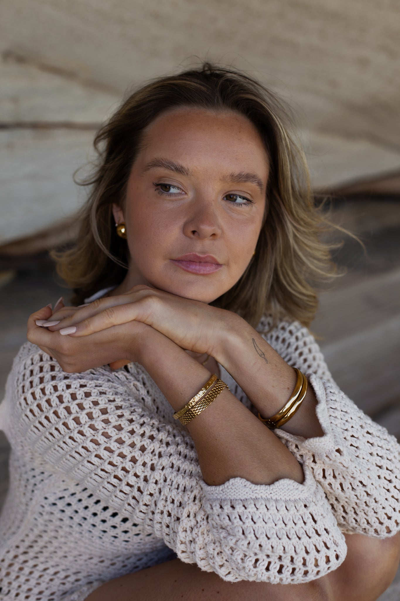 The Textured Bangle Bracelet is the perfect everyday piece, adding a subtle gold detail to any look. Its softly textured surface catches the light beautifully, giving just the right amount of shine.